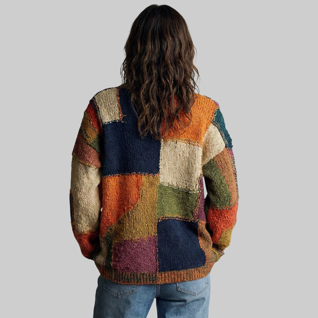 Zaira is the ideal jumper for those looking for a distinctive garment that combines art, style and personality. The refined feline motif in patchwork style gives the garment an artistic and bohemian character, making it a tasteful choice for women who like to stand out in an elegant way.
